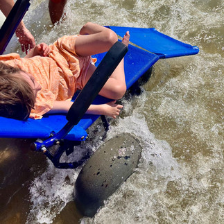 Fomos à praia com a Anne em novembro de 2024 e os salva-vidas nos disponibilizaram a cadeira de praia para andar com a Anne na areia. Ela adorou o passeio, e as costas da mamãe agradeceram! Pesquisei na internet e uma dessas custa em torno de R$ 3.500,00, um preço bem salgado quanto à água do mar! Mas ainda bem que várias praias têm essas disponíveis para nos atender. Basta procurar um posto de salva-vidas e informar-se quanto às regras do local e seu uso.